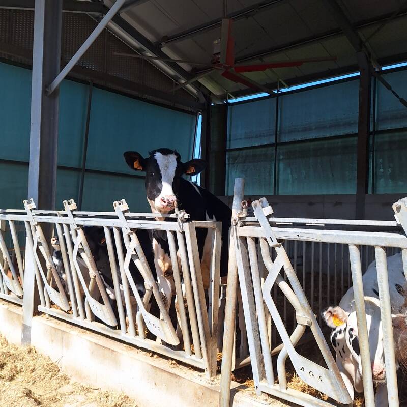 Oggi siamo andate a trovare i vitellini appena nati e abbiamo trovato una "muccotta curiosa". Che ridere, c'era una scolaresca in visita alla fattoria didattica e lei ogni volta che qualcuno passava, si alzava e osservava.